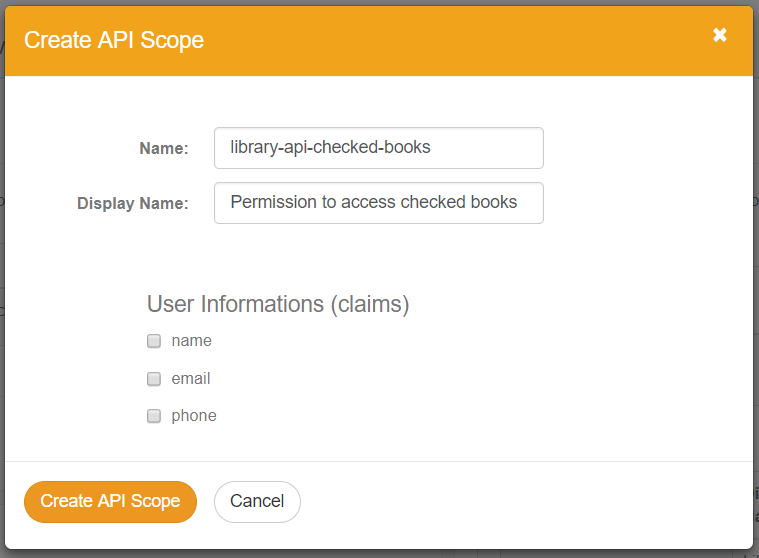 The last step is changing the library website so it checks if the Access Token provided by the user contains the required API Scope (library-api-checked-books).